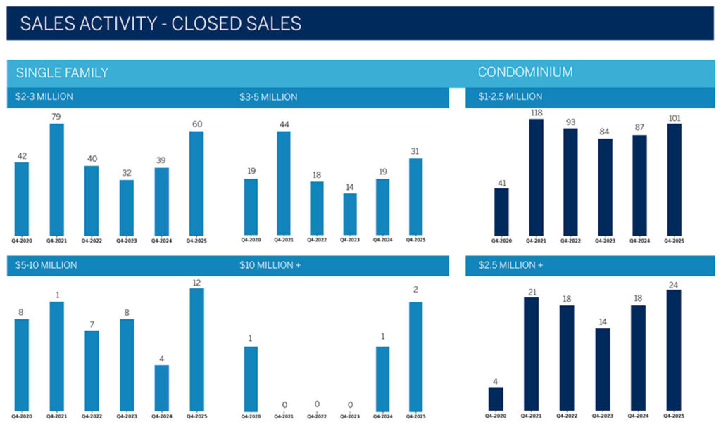 ●500万〜1,000万ドル未満 この価格帯では12件が成約し、昨年の4件と比較して200%(3倍)の急増となりました。在庫供給月数は、昨年の29.3ヶ月から9.5ヶ月へと67.6%も大幅に短縮されています。